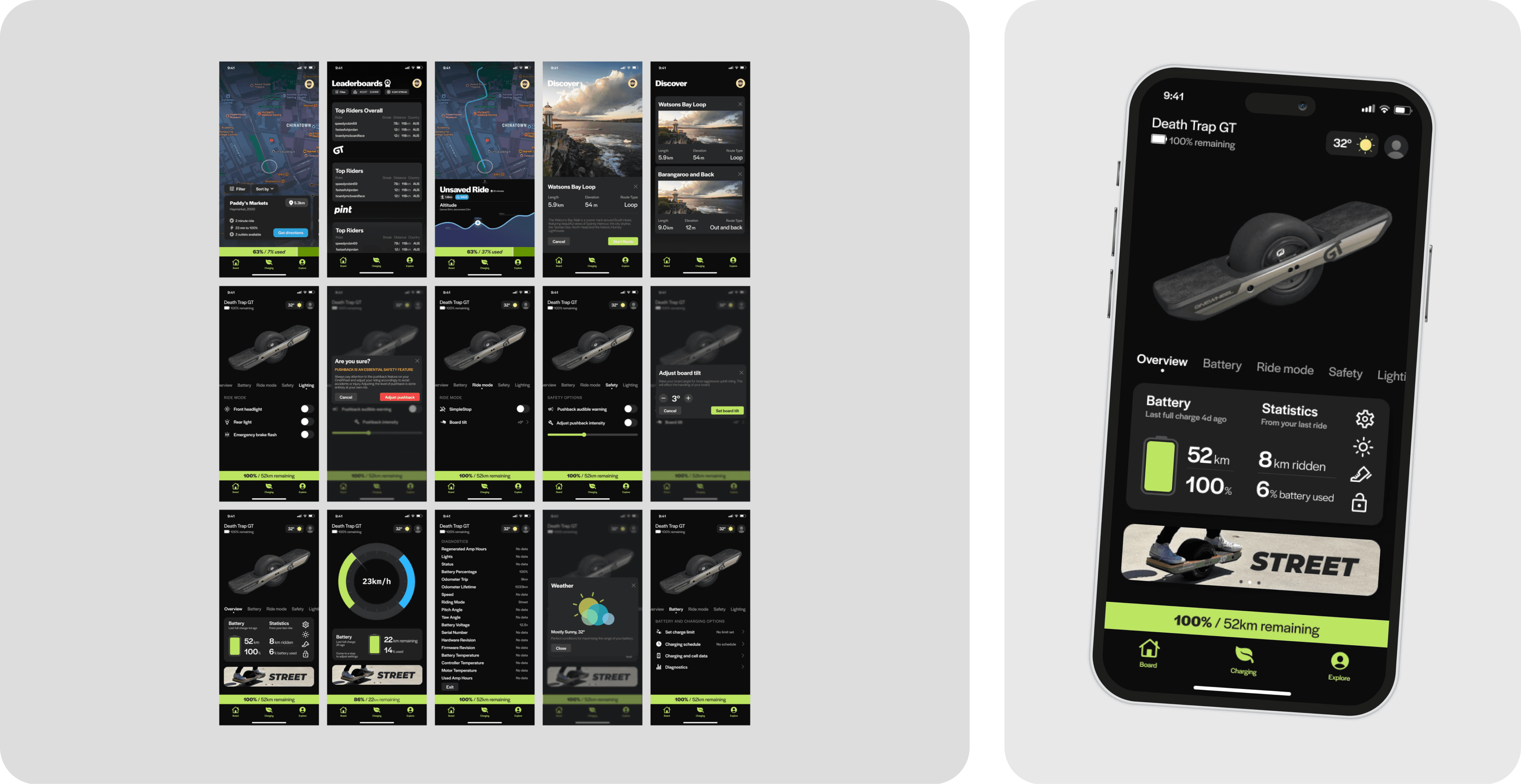 As someone who rides a Onewheel myself, I wanted the experience to genuinely improve how the app feels to use — cleaner flows, clearer interactions, and visuals that actually make sense out on a ride.